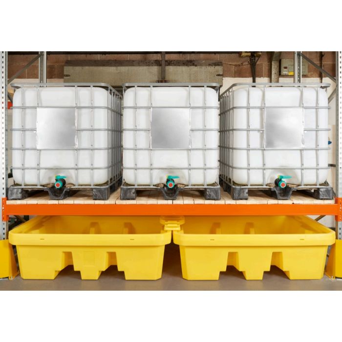 Transformeer magazijnstellingen eenvoudig om naar een IBC-of vatenopslag met onze innovatieve nieuwe modulaire lekbak.
