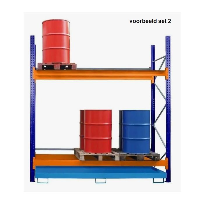 Opslagstelling geschikt voor het veilig en efficient opslaan van vloeistofverpakkingen / drums.
